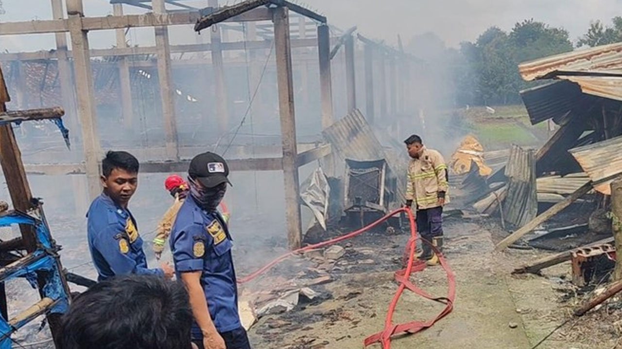 Petugas pemadam kebakaran bersama warga berjibaku memadamkan api agar tidak merembet ke bangunan lain. Proses pemadaman berlangsung cukup lama karena material kandang yang mudah terbakar serta keterbatasan akses air di lokasi.